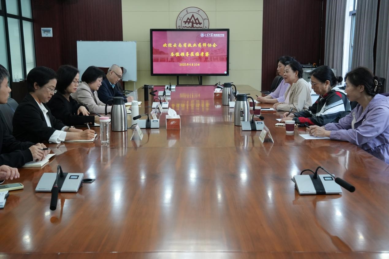 4月10日,云南省执业药师协会监事长刘穗一行四人来beat365考察座谈。beat365英国官方网站党委书记姜文丽、副院长林飞、周明华及相关部门负责人参与座谈。
