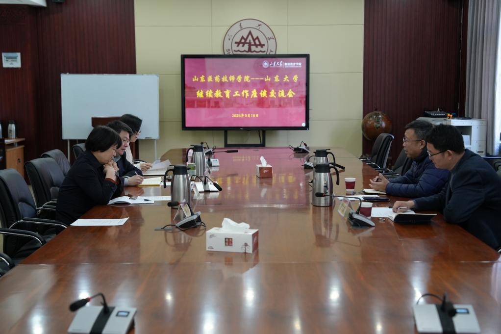 3月18日,山东医药技师学院培训发展处处长乔继峰、生物与食品科学系主任张京武,就产教融合、校企合作、培训模式到beat365座谈交流。beat365英国官方网站党委书记姜文丽、院长刘超、副院长周明华参加座谈。