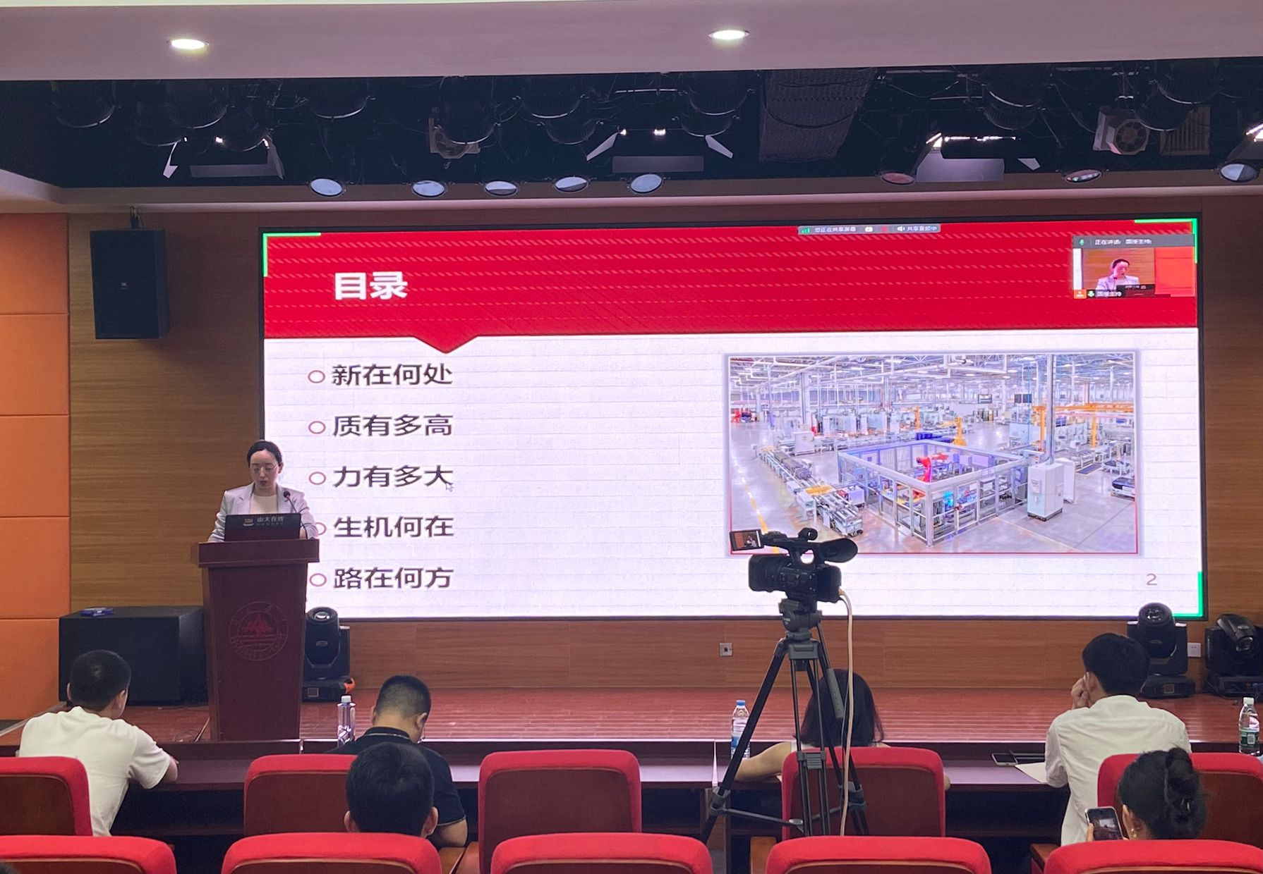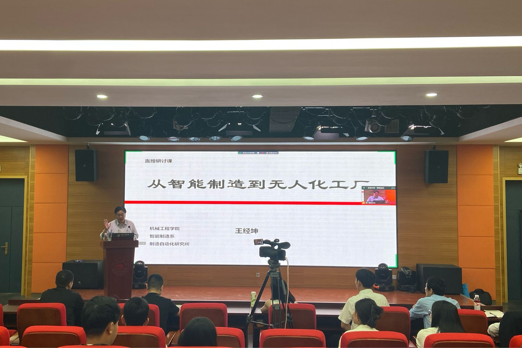 上午,由机械学院王经坤教授为学生带来“从智能制造到无人化工厂”主题授课。王教授以生动的语言和丰富的实例,详细阐述了工业发展各个阶段的特点和变革,让同学们仿佛穿越时光隧道,亲身感受到了工业从传统手工到高度智能化的巨大飞跃。在讲解智能制造关键技术时,王教授深入浅出地剖析了各种先进技术的原理和应用,如人工智能、大数据、物联网等;分享智能制造案例时,一个个成功的实践成果展现在同学们眼前,那些智能化的工厂运作场景让大家惊叹不已。同学们积极提问,与王教授展开热烈的讨论,思维的火花在教室里不断迸发。