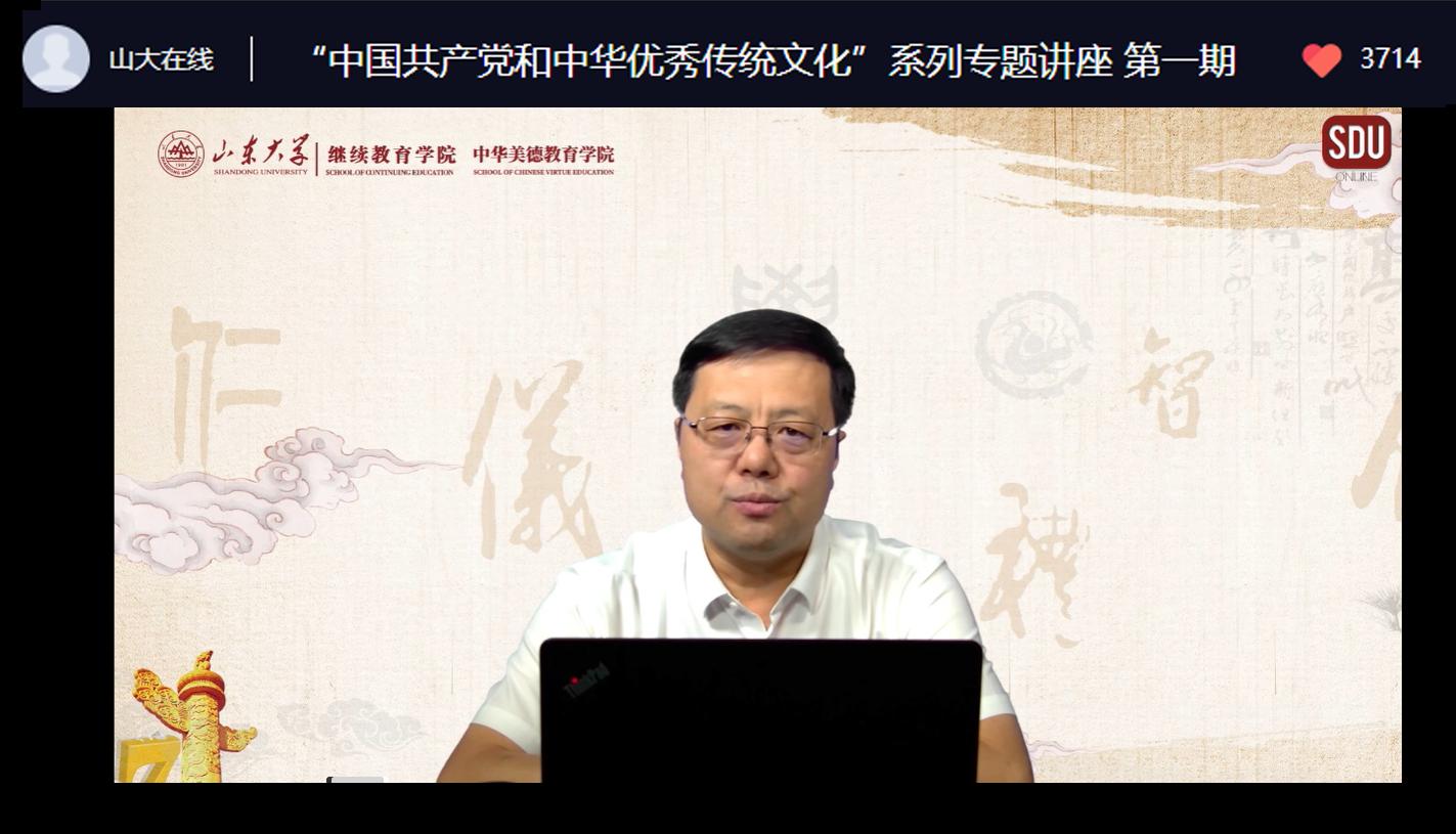 为贯彻落实习近平总书记关于弘扬中华优秀传统文化的重要论述精神,切实担负时代赋予高校的文化传承使命,打造优秀传统文化“两创”高地,迎接党的二十大胜利召开,beat365英国官方网站联合中华美德教育学院策划举办“中国共产党与中华优秀传统文化”系列讲座,并于七一建党节来临之际,特邀中共济南市委党校副校长扈书乘开展第一期题为“从优秀传统文化中汲取党性修养智慧”的专题讲座。