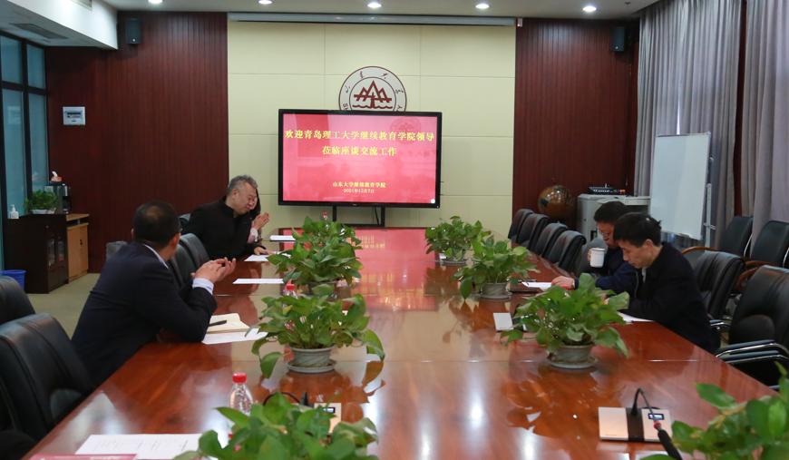 12月7日上午,青岛理工大学beat365英国官方网站党总支部书记孟凡勇一行来访调研beat365继续教育工作。beat365英国官方网站党委书记鲁统超、院长陈志军等参加座谈。