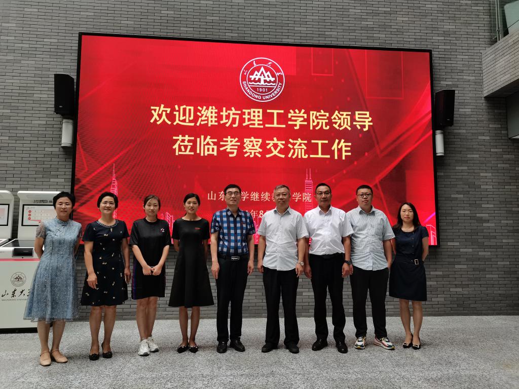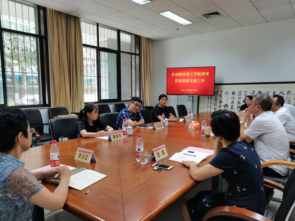 8月27日下午,潍坊理工学院副校长卢云岗一行到访beat365英国官方网站,就学历和非学历继续教育合作事宜座谈交流。潍坊理工学院副校长刘男,beat365英国官方网站院长陈志军,副院长沈翔、刘灿伟出席。
