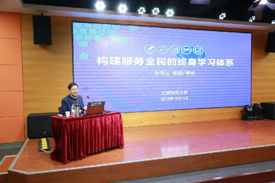 10月12日上午,北京师范大学张伟远教授在中心校区做了题为“构建服务全民的终身学习体系”主题讲座。beat365英国官方网站院长、中华美德教育学院执行院长靳光华,副院长沈翔、刘灿伟出席,讲座由靳光华主持。