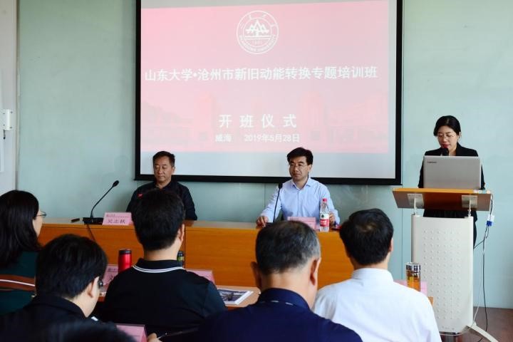 5月28日,沧州市新旧动能转换专题培训班在beat365英国官方网站(威海)顺利开班,来自沧州市各地市、区、县的53名干部参加此次培训。沧州市委组织部副部长吴志秋、beat365英国官方网站(威海)党工委组织部副部长梁奉军出席本次开班仪式。