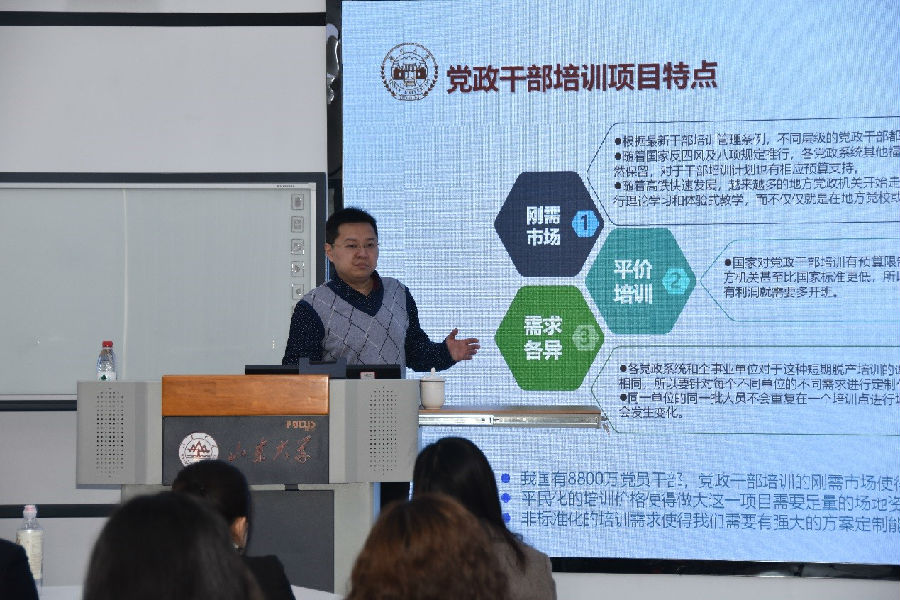 来自清华大学的专家从课程方案、市场推广、项目运营和培训评估四个方面做了详细分享,特别是市场推广和培训评估给大家带来了许多新的思路;来自济南市委党校的专家针对政治安全暨政府机构改革的介绍,强化了大家的政治观念和意识形态,明确了大家今后的工作方向;来自湖南大学的专家从全网营销策略和打造独特品牌角度,采用“十五步法“,从花费推广费用、获取访客流量、获得网络询盘、获得有效线索、制作培训方案等精细化数据分析,为党政干部培训项目的品牌建设做了一个良好的目标用户群覆盖。
