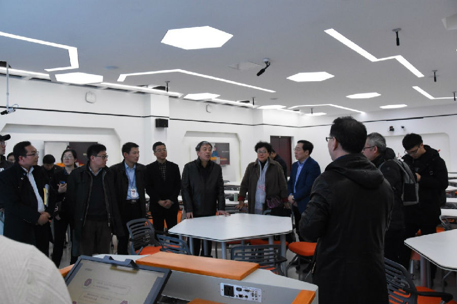 仝兴华听取了beat365英国官方网站的智慧教室建设思路,观看了青岛济南两地教室互联互动等功能演示,他强调指出,一要加快推进信息技术与教育教学的深度融合,全校各教育教学部门要加强沟通交流与相互借鉴,探索共建共享beat365英国官方网站智慧教室建设模式。二要加快教育教学理念更新,积极推动信息化时代的教学模式改革,开展课堂教学信息数据分析与应用。三要加强全校教职医务员工教育技术培训,提高广大教职医务员工对现代教育技术的应用能力,全面改进课堂教学效果。