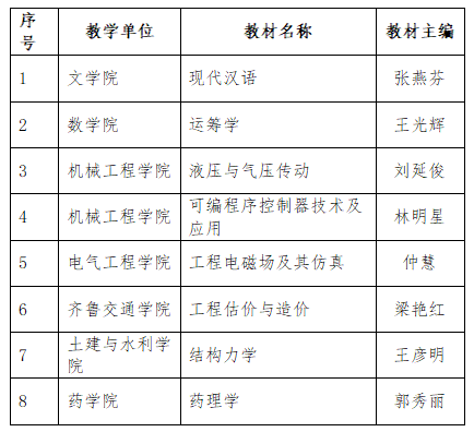 根据《关于开展继续教育教材建设立项申报工作的通知》要求,经教学单位推荐、个人申报、专家评审等环节,共评选出8部教材进行立项,现将立项名单(按所属学科编号排序)公示如下: