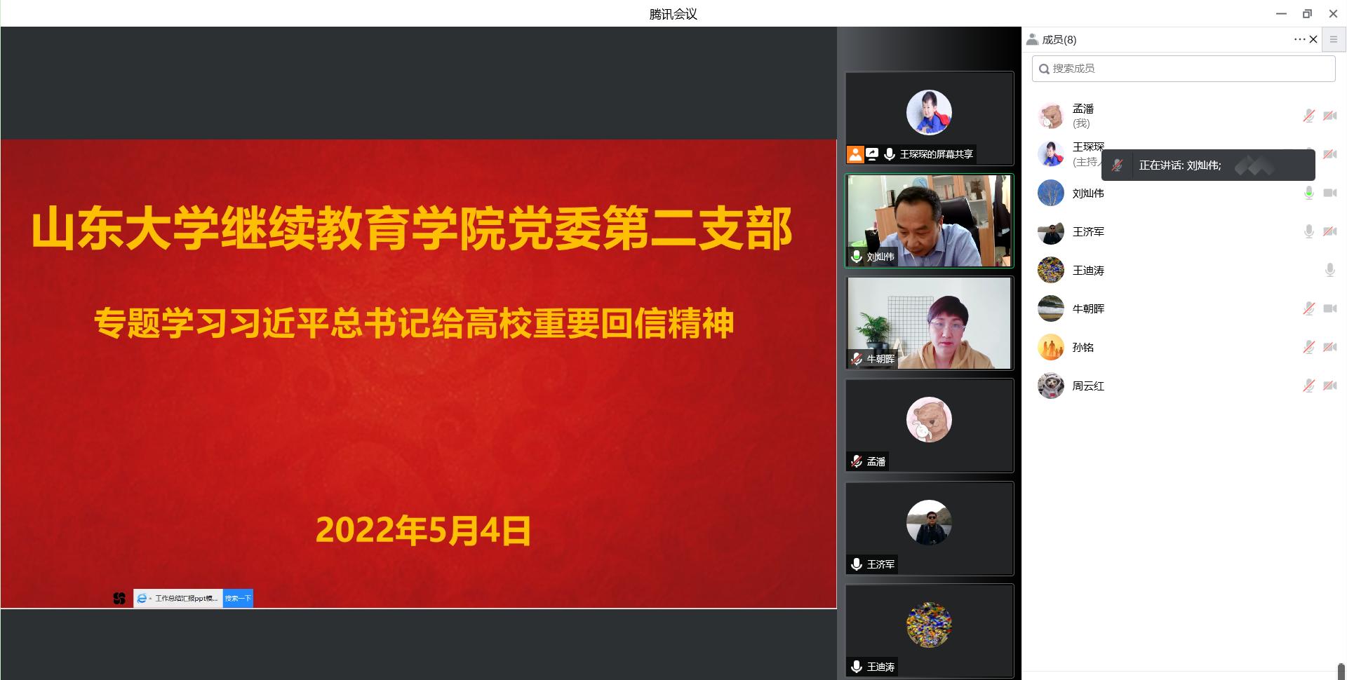 为进一步弘扬“爱国、进步、民主、科学”的五四精神,提升党员队伍凝聚力、战斗力,筑牢基层组织战斗堡垒,激励beat365英国官方网站全体党员以昂扬向上的精神风貌打赢疫情攻坚战,根据学校党委安排部署,beat365英国官方网站党委第一、第二支部在五四青年节之日开展线上专题学习交流活动,专题学习习近平总书记有关高校的重要回信精神。