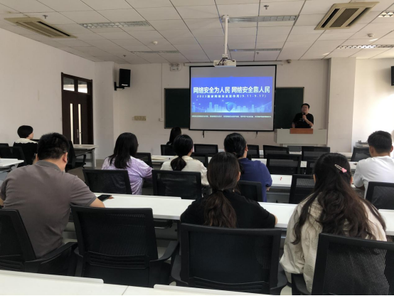 随后,青年理论学习小组成员李德宝结合近期网络安全宣传周相关内容,以《网络安全为人民 网络安全靠人民》为主题,通过数据分析和现实案例宣传网络安全理念、普及网络安全知识并推广网络安全技能,引导大家时刻警惕互联网背后存在的安全隐患,共筑网络安全防线,保障学校继续教育工作安全稳定发展。