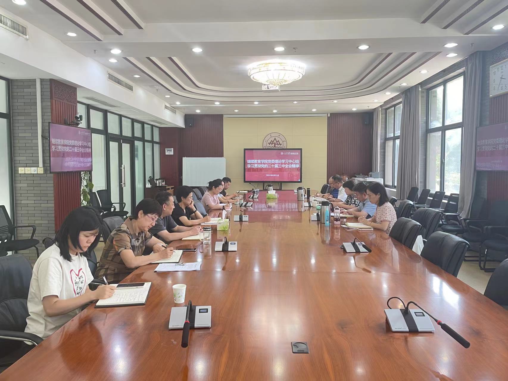 会议强调,要把学习贯彻全会精神成果有效转化为破解学院改革发展难题的实招硬招,把全会精神融入到实现继续教育高质量发展的生动实践中。一是要深刻领会新征程上进一步全面深化改革的重大意义,更加坚定自觉紧跟总书记、奋进新征程,确保党的教育事业和中国式现代化建设行稳致远。二是要在全院范围内迅速掀起学习宣传贯彻热潮,班子成员要先学一步、学深一层,以上率下、示范带动,精心组织好宣传宣讲、党员教育、事业改革等各项工作,推动全会精神深入人心、落实落地。三是要把全面贯彻落实全会精神和学校党代会精神结合起来,对照学校党代会提出的目标任务和学院领导班子任期目标等,锐意进取、真抓实干,进一步推动和谋划学院继续教育改革工作,形成更多贯彻落实的实招硬招,打开学院事业发展新局面。