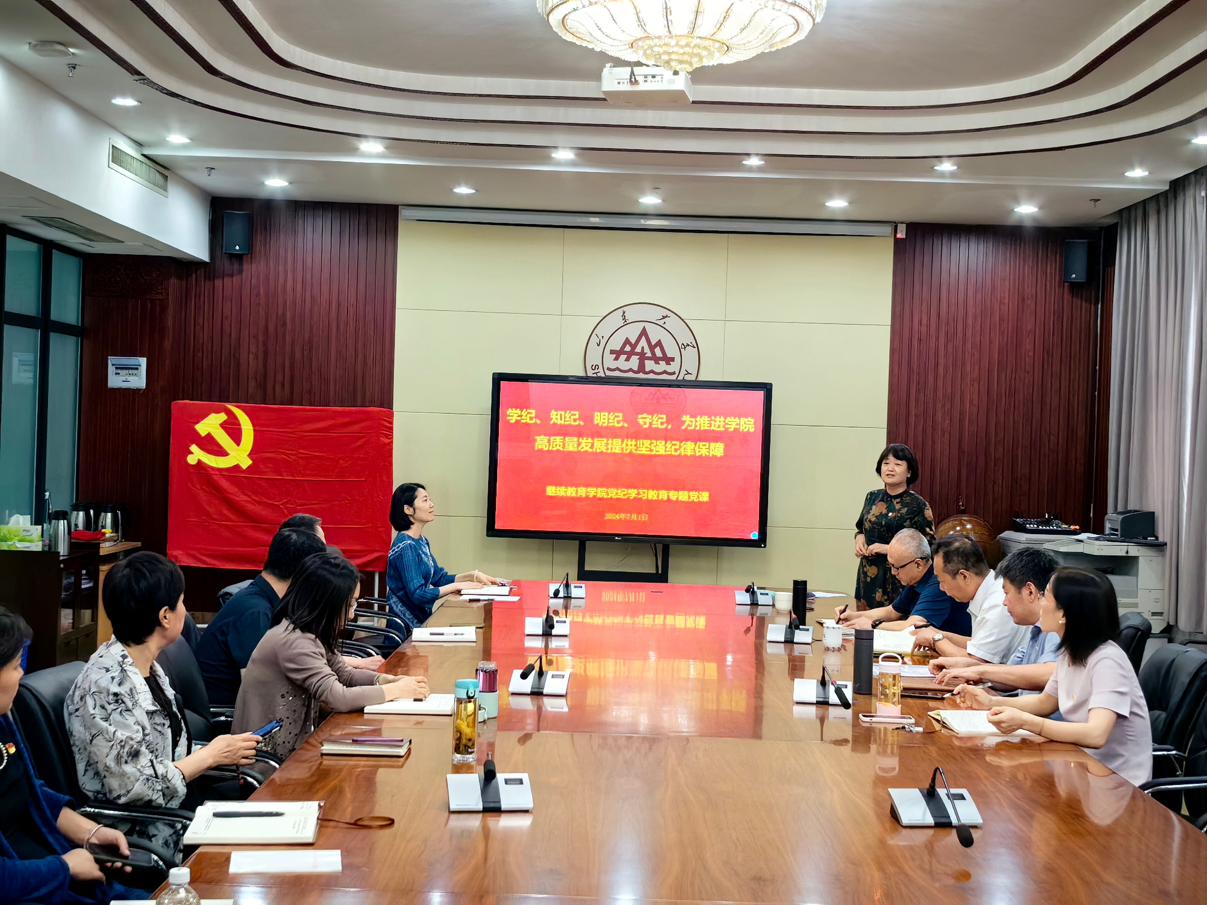 为深入学习贯彻落实习近平总书记关于党的纪律建设的重要论述,推进党纪学习教育走深走实,7月1日,学院党委书记姜文丽以“学纪、知纪、明纪、守纪,为推进继续教育高质量发展提供坚强纪律保障”为题,为学院全体党员讲授党课。