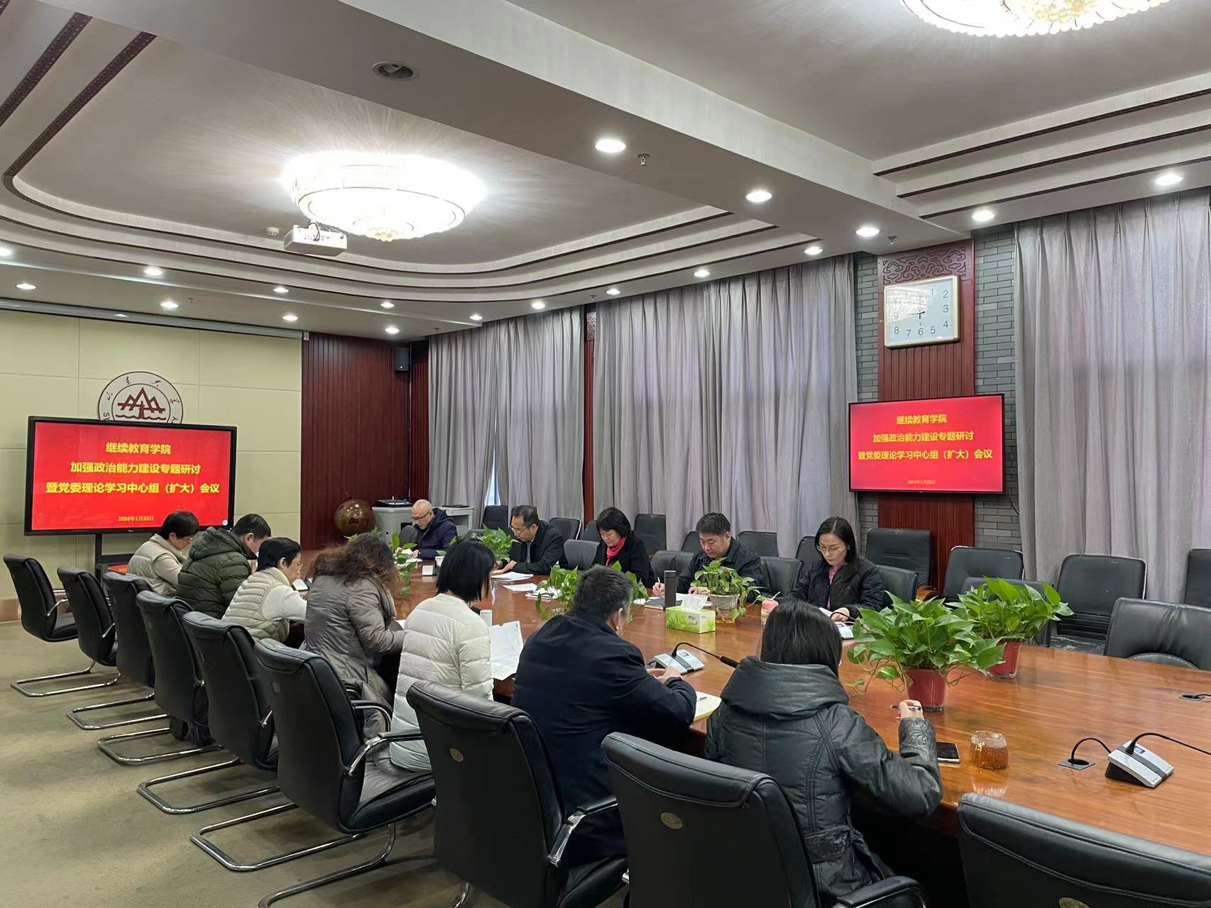 1月23日上午,beat365英国官方网站召开加强政治能力建设专题研讨暨党委理论学习中心组(扩大)会议。党委书记姜文丽主持会议,院长刘超做重点发言,学院领导班子成员、党委委员、党支部书记和各科室主任参加会议。