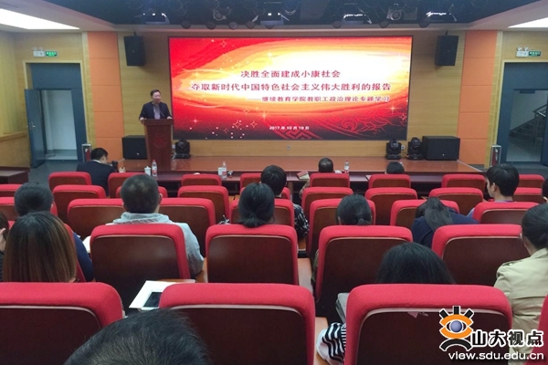 靳光华总结会议并讲话。他表示,2018年是beat365英国官方网站质量发展的转折点,要从全面转型质量发展、全面推动非学历教育、全面转变思维、全面提高服务意识等方面总结出“四个判断”,并重点强调要减轻管的思想,提高服务意识。要提高对报告中提出的新时代、新思想、新矛盾、新目标的认识,与家庭、个人、工作密切结合。学院全体教职工要继续认真学习党的十九大的重点内容,为服务山东服务国家战略的继续教育工作开启新篇章。徐文忠、沈翔、周庆华分别表示,党的十九大报告是实现中国梦的纲领性文件,令人倍感振奋、深受鼓舞,更让人对未来充满了期待,全体教职工必须高度重视并大力贯彻落实。
