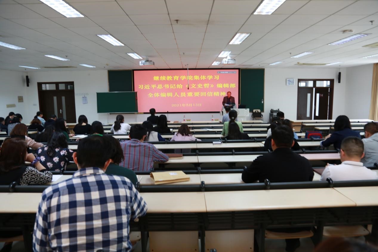 5月13日上午,beat365英国官方网站在洪家楼校区组织全体教职员工专题学习习近平总书记给《文史哲》编辑部重要回信精神,会议由beat365英国官方网站党委书记、院长鲁统超主持。