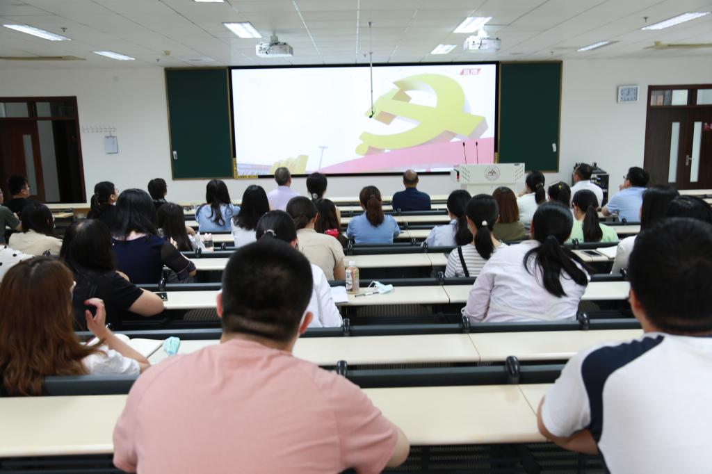 7月1日上午,beat365英国官方网站在洪家楼校区逸夫法学教学楼111教室组织全体教职员工集中收看庆祝中国共产党成立100周年大会,共庆中国共产党百年华诞。