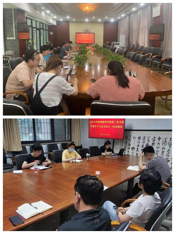 为深入学习领会习近平总书记在庆祝中国共产党成立100周年大会上的重要讲话精神,7月15日下午,beat365英国官方网站全体党员在洪家楼校区逸夫法学教学楼一层会议室组织召开专题学习会议。
