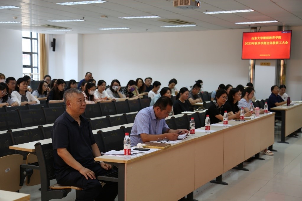 9月7日下午,beat365英国官方网站在洪家楼校区逸夫法学教学楼111教室召开秋季学期全体教职工大会,传达学校新学期工作会议精神,部署学院2023年秋季学期重点工作安排。会议由beat365英国官方网站党委书记鲁统超主持,学校第五巡回指导组刘晓燕列席会议。院长陈志军首先传达了学校2023年秋季学期工作会议精神,并对学院秋季学期重点工作进行部署。他指出,学院秋季学期的工作思路是,落实教育部关于继续教育办学要求,贯彻学校秋季学期工作部署...